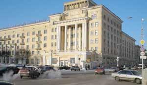 Дом, на котором 25 сентября 1943 г. было водружено знамя освобождения г. Смоленска от немецко-фашистских захватчиков (гостиница «Смоленск», 1937-1939 гг., арх. Великовский Б.М., Голосов И.А.).