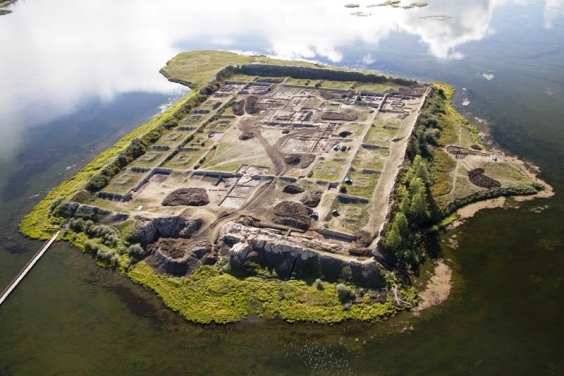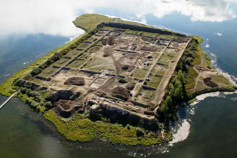 Археологический полевой лагерь и остров, на котором находится крепость, соединяет свайный мост. Его длина составляет 1,3 километра. В лагере постоянно находится технический персонал в количестве 38 человек и 21 единица вспомогательной техники.