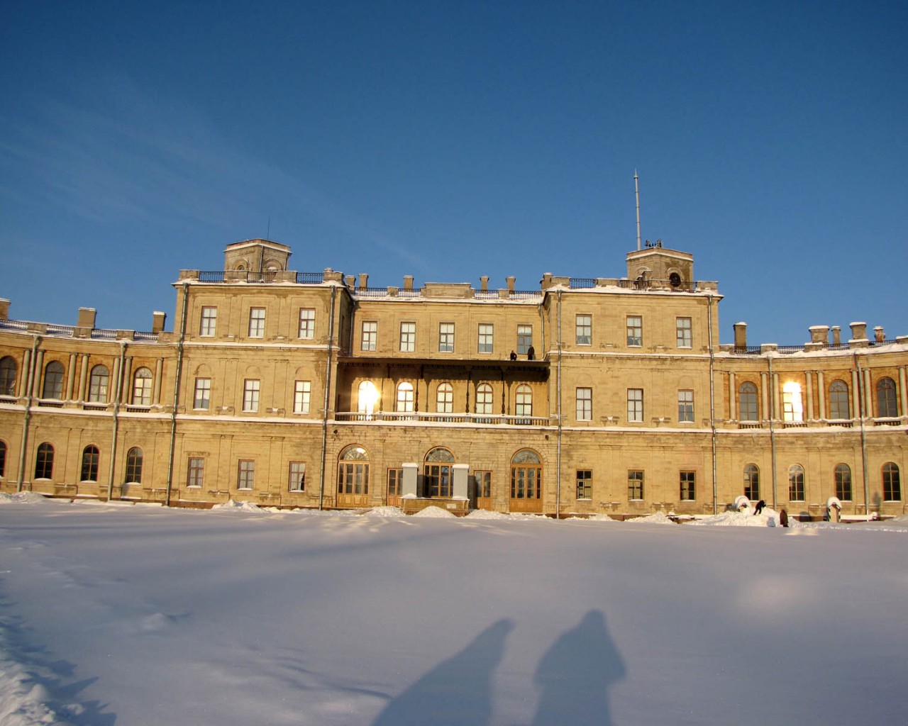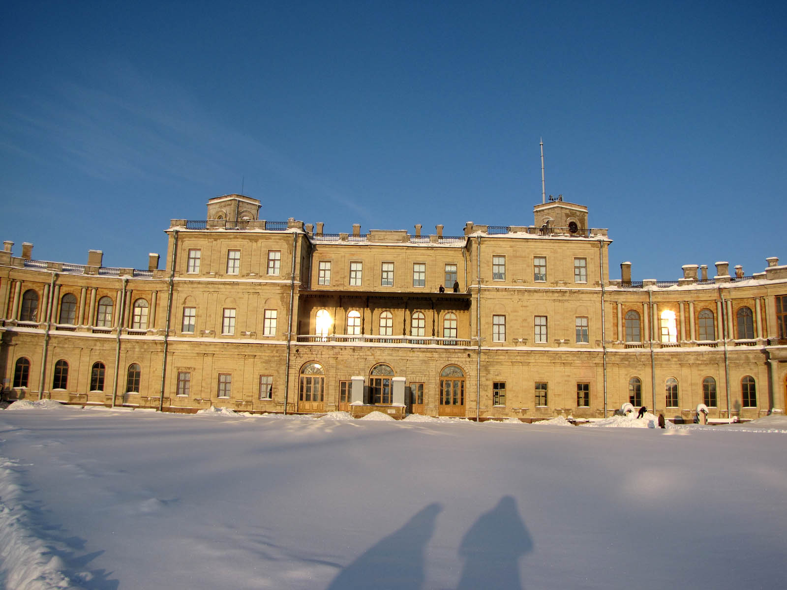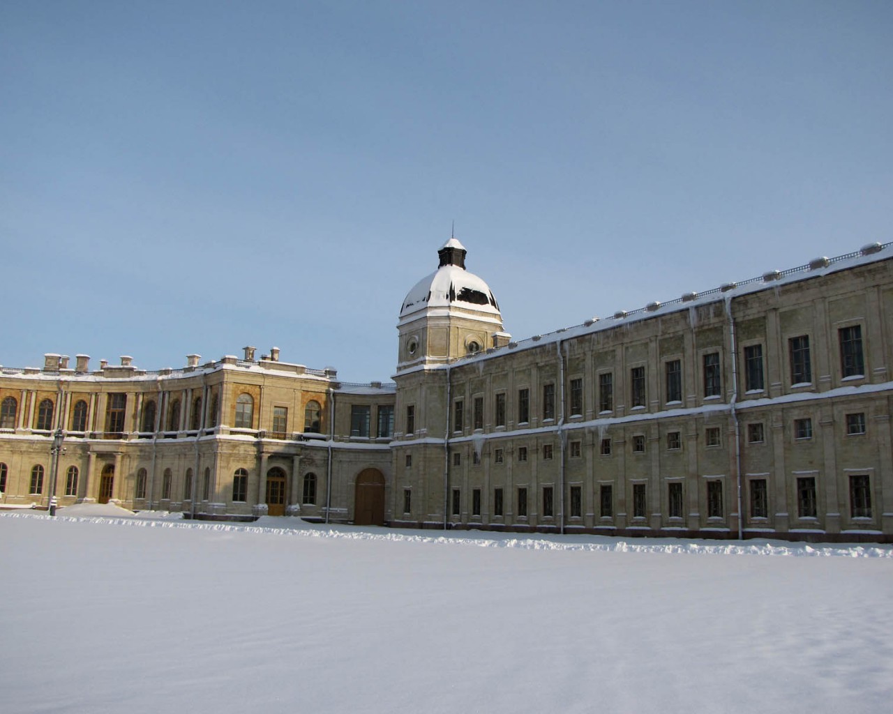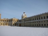 Большой Гатчинский дворец, во дворце имеет особый интерес подземный ход, ведущий прямо из покоев на берег Серебряного озера, к гроту Эхо.