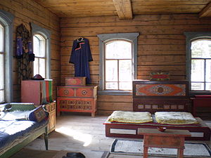Бурятский комплекс состоит из юрт (как деревянных так и войлочных), и культового буддийского сооружения — дугана.