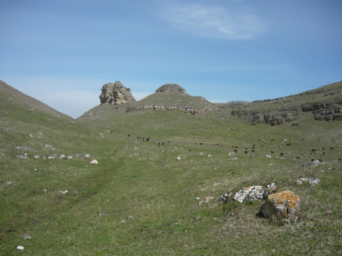 Справа над посёлком Орджоникидзевский высится гора Токмак-Кая (1361м) с вершиной в виде башенки. Когда-то на ней стояла сторожевая башня, одна из многих. Окна-бойницы смотрели на Великий Шёлковый путь, передвижение по которому контролировалось из этой и подобных ей башен. Сторожевой отряд был готов в любую минуту прийти на помощь или отразить натиск неприятеля у стен своего города, располагавшегося под самой скалой. Здесь же находился и скальный некрополь.