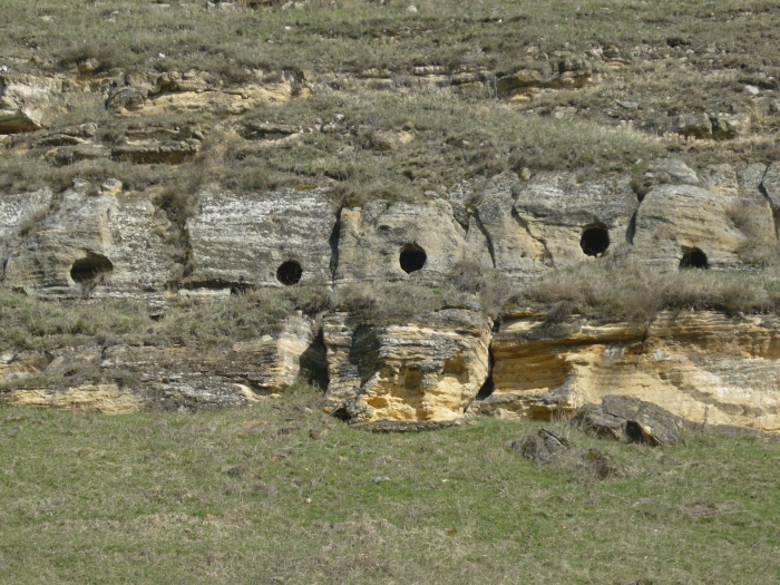 Большую загадку представляют многочисленные рунические надписи на внешних стенах гробниц в сочетании с неканонической формы крестами, выбитыми рядом с рунами и чашечными углублениями.