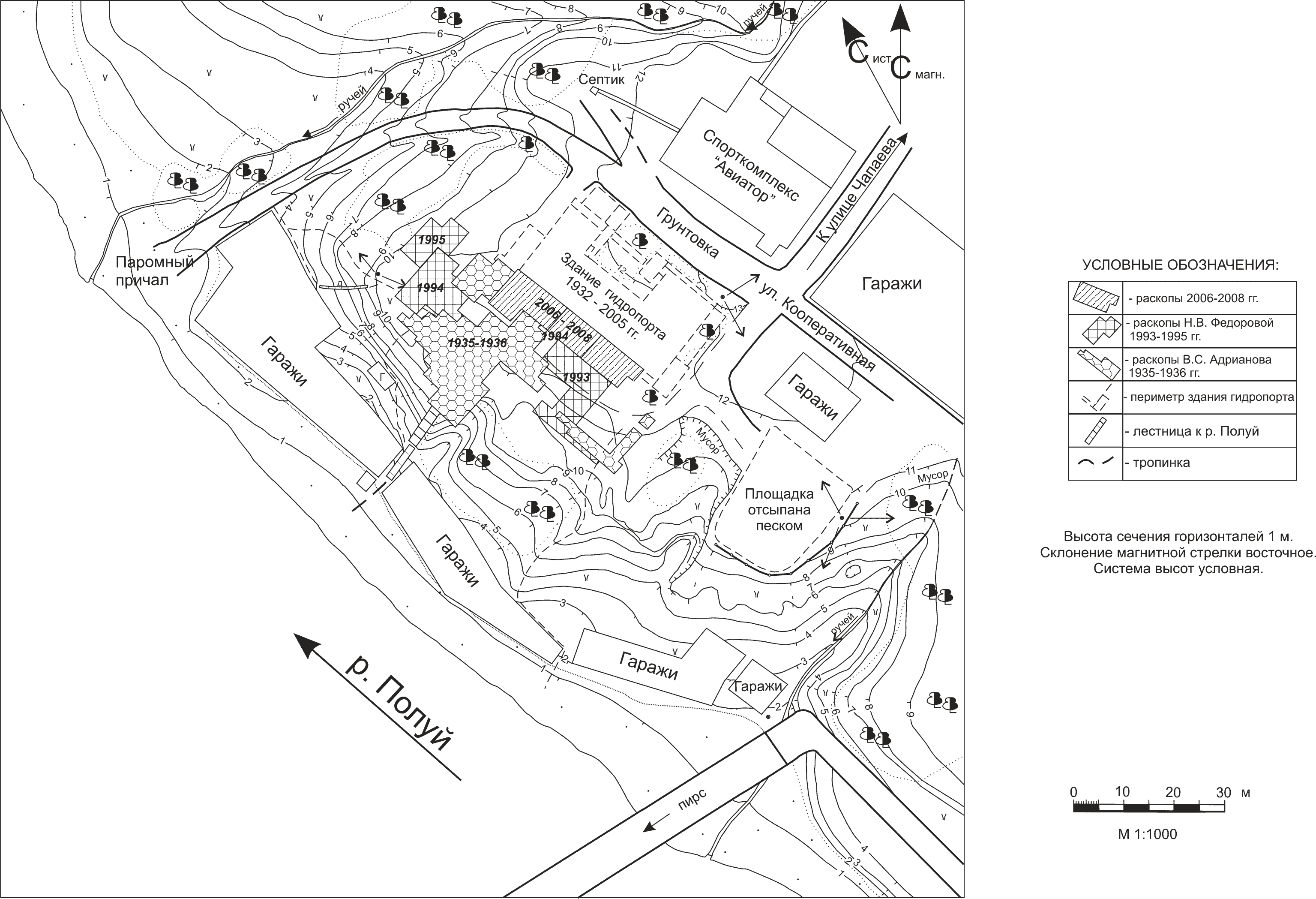 Открыто в 1932 году при строительстве здания гидропорта. Исследовалось в 1935-36 годах экспедицией МАЭ под руководством В.С.Адрианова. В 1946 году памятник обследовался В.Н.Чернецовым и В.И.Мошинской. С 1993 года экспедицией УрГУ под руководством Н.В.Федоровой. Археологический памятник Усть-Полуй городище и ритуальный комплекс является уникальным и особо ценным источником по истории и материальной культуре населения Северо-Западной Сибири. Городище представляет довольно редкий для территории региона тип памятника с культурным слоем, содержащим предметы из органических материалов (дерева, бересты и кости). Особую значимость памятнику придает наличие в культурном слое следов металлообрабатывающего (литейного) производства и ритуальной деятельности. Так же памятник является важным объектом для комплексного исследования всех сторон жизнедеятельности аборигенного населения, предоставляет материал для палеоэкологических исследований – археозоологии, дендрохронологии, палеоботаники. С 90-х годов исследованиями археологического памятника занимается Ямальская археологическая экспедиция http://www.yamalarchaeology.ru/
