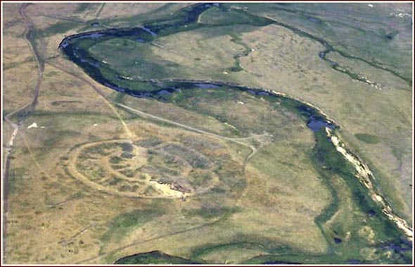 Общая площадь памятника 20 тыс.кв.м. Площадь археологических раскопов - более 8 тыс.кв.м. На современной степной поверхности хорошо прослеживается обводной ров, за ним - два кольца земляных валов, центральная площадь. Археологические исследования показали, что валы - это остатки оборонительных стен, сложенных из грунта сырцовых блоков и дерева. Внутри каждого кольца, словно спицы в колесе, расположены жилища, которые строились из бревенчатых каркасов и грунтовых блоков. В хозяйственных отсеках домов - очаги, колодцы, ямы для хранения продуктов, металлургические печи. Перед выходами - крытые дворики. Сегодня исследовано 29 жилищ. Геофизические методы позволили установить, что весь комплекс состоял из 60 построек (35 - во внешнем круге и 25 - во внутреннем). Круговые и радиальные улицы, система водосброса и канализации, основания надвратных башен, ниши и переходы внутри мощных оборонительных стен - все это представляет собой необычайно яркую картину. На поселении собрана большая коллекция керамики, изделий из кости и камня, металлических орудий труда и многочисленные предметы, связанные с металлургическим производством.