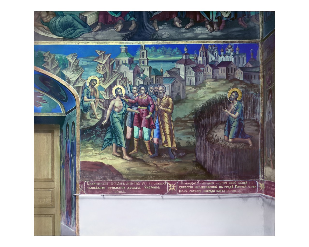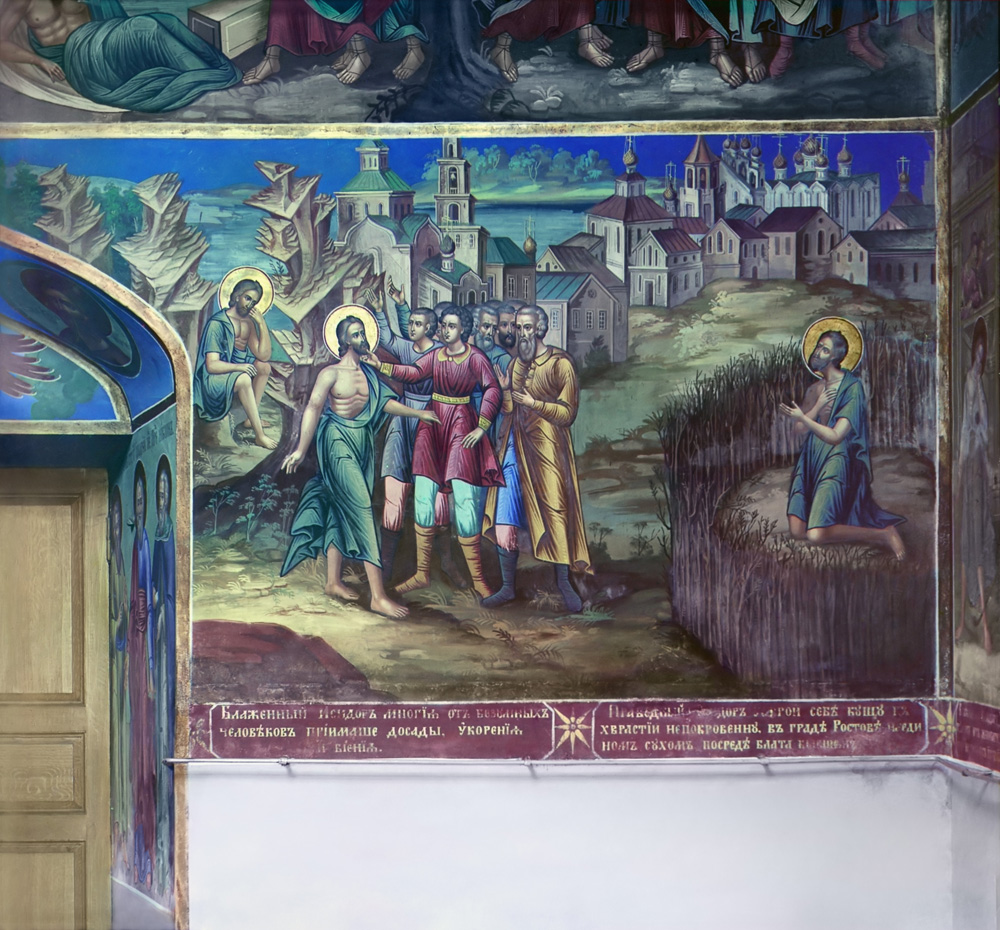 Исторические события, связанные с объектом: В 1770 году к храму пристроен придел во имя Исидора Блаженного, Христа ради юродивого, пребывающего в Ростове с XV века. С тех пор церковь больше известна как храм Исидора Блаженного. Также в 18 веке с западной стороны к нему пристроена колокольня; была изменена форма покрытия церкви - сооружена луковичная глава, также растесаны и расширены окна. В 19 в. пристроили западную паперть и вместо прежней шатровой колокольни возвели новую, в классицистическом стиле, существующую по сей день. Первоначальные формы храма были восстановлены при реставрации в 1956 - 1959 гг. (архитектор Л.А. Давид). В ходе работ был разобран южный придел, реконструированы шлемовидная глава, трехлопастное покрытие церкви, формы окон, профили цоколя и порталов. Интерьер церкви первоначально не был расписан. Стенопись появилась, как предполагают, в 1720-е гг. и после этого несколько раз поновлялась. При создании росписи был разобран древний четырехъярусный иконостас, вклад Иоанна Грозного, и восточная стена получила оформление по образцу церквей Архиерейского дома - на ней стенным письмом был написан иконостас традиционного состава. В 1930 г. церковь была закрыта и передана в ведение Ростовского музея. В 2002 году в храме возобновились богослужения. 27 мая 2002 года был подписан трехсторонний договор между ГМЗ "Ростовский кремль", Ярославской епархией и Ярославским департаментом культуры по поводу деятельности Храма Блаженного Исидора в валах. В связи с этим в храме возобновились богослужения, прекращенные в период гонений на Церковь. Богослужения проходят у надгробья древнего и знаменитого ростовского святого - блаженного чудотворца Исидора. При жизни и после смерти, этот святой прославился многочисленными чудотворениями и исцелениями, в том числе и от недуга пьянства, за что в народе его звали "Твердисловом". Такое название святой получил и потому, что "слово его всегда сбывалось".