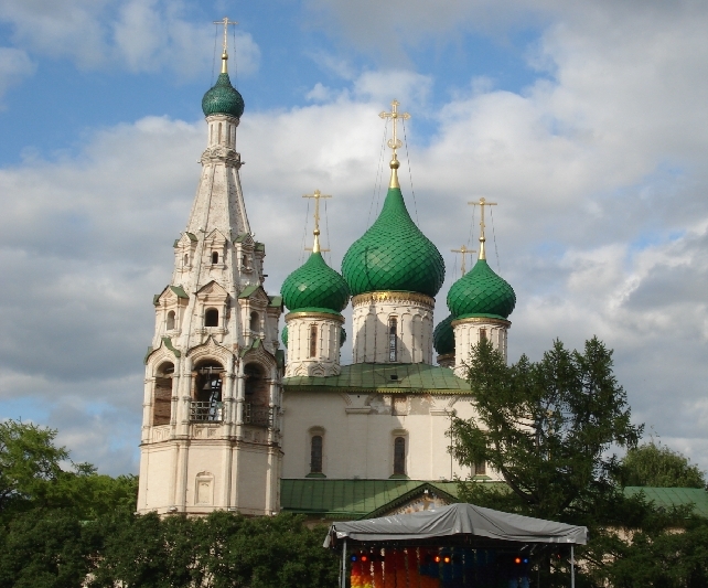 Церковь Ильи Пророка - выдающийся памятник русской художественной культуры XVII столетия, вписавший ярчайшую страницу в развитие ярославской школы архитектуры и живописи. Церковь была построена в 1647-1650 гг. на месте двух деревянных храмов на средства богатейших местных купцов братьев Вонифатия и Иоанникия Скрипиных. Возведенная первоначально на территории усадьбы храмоздателей, после реконструкции Ярославля по плану 1778 г., Ильинская церковь стала центром административной площади, одним из главных архитектурных сооружений города. В 1920 году здание передали Ярославскому музею-заповеднику. В 1989 году главный престол церкви Ильи Пророка был вновь освящён, и с тех пор в летнее время в храме проводятся церковные службы.