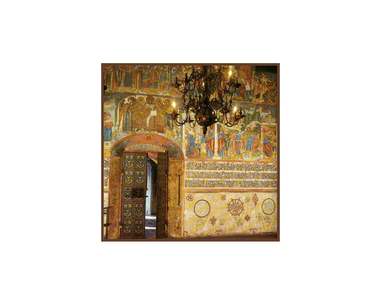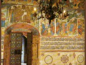 Галереи и Ризоположенский придел были расписаны ярославскими живописцами в 1682 году и частично дополнены в 1716 году. Эти росписи, конечно, намного проще живописи основного храма и отчасти смахивают на народный лубок. Ризоположенский придел напоминает о реликвии, хранившейся в церкви Ильи Пророка — частице Ризы Господней. Сюжеты стенописи Ризоположенско-го придела как раз и повествуют об истории обретения Ризы и о передаче ее царю Михаилу Федоровичу.