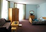 Люксы четырехместные двухкомнатные: совмещенный санузел с ванной, двуспальная кровать в одной комнате и две односпальные кровати - в другой комнате, холодильник, телевизор, обеденный стол, кондиционер, телефон, шкаф для одежды и белья.