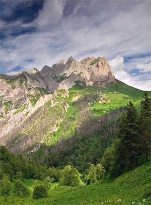 2.3. В Краснодарском крае расположен один из крупнейших заповедников России - Кавказский, организованный в 1924 году. В 1983 году он получил статус "Биосферного", и сегодня именуется как Кавказский Государственный Биосферный Заповедник (КГБЗ). Он занимает юго-восточную часть Кубани, и большая его часть находится на северном склоне Главного Кавказского хребта, меньшая - на южном склоне. Площадь заповедника - 262,5 тысяч гектар. Хостинская тисосамшитовая роща - площадью 301 гектар - филиал заповедника. Кавказский заповедник учреждён с целью охраны природы, типичной для западной части Главного Кавказского хребта. Леса имеют большое водоохранное значение для Краснодарского края, восстановления численности ценных видов зверей и птиц, особенно зубра, тура, серны, Кавказского благородного оленя, медведя, лесной куницы, Кавказского глухаря, улара и других, изучения местного климата, режима рек, ледников, почв, растительности и животного мира. Для рельефа заповедника характерна большая расчленённость. У его западной границы возвышаются известняковые массивы: г. Фишт - 2 852 м., г. Оштен - 2 808 м. Здесь находятся самые высокие вершины в Краснодарском крае: г. Чугуш - 3 240 м. и г. Акарагварта, или пик Смидовича - 3 360 м. Вершины наиболее высоких хребтов и массивов увенчаны остроконечными пиками, зубцами, а их склоны нередко крутые, часто покрыты осыпями. В понижениях около гребня пятнами лежит вечный снег, а местами встречаются и ледники. Снежники и ледники питают многие реки и ручьи, стекающие по северному склону (реки Белая, Большая и Малая Лаба) в р. Кубань, а по южному склону (реки Мзымта, Сочи, Шахе) - в Чёрное море.