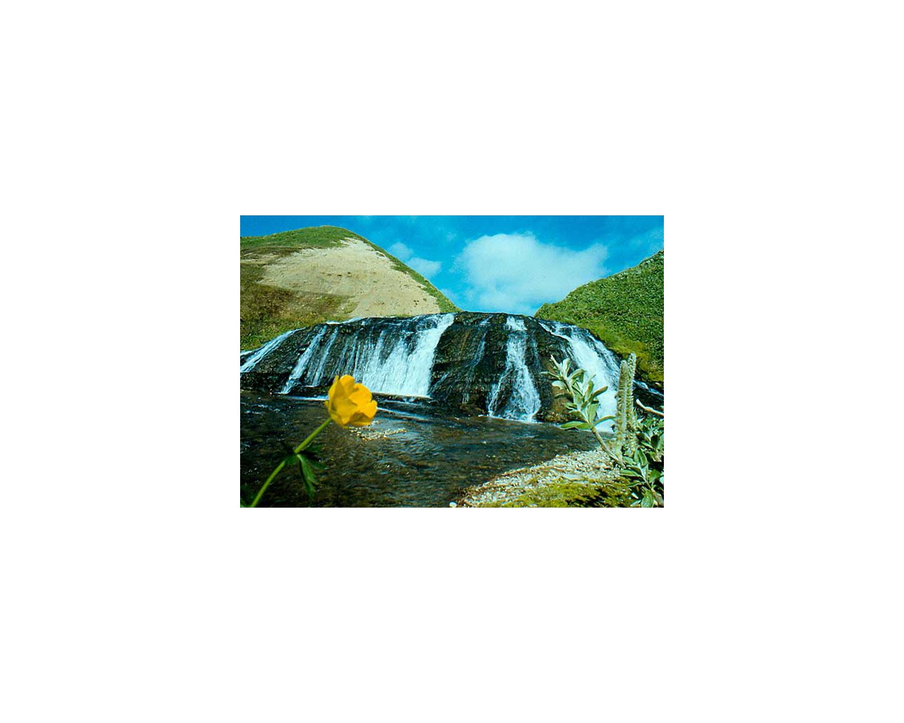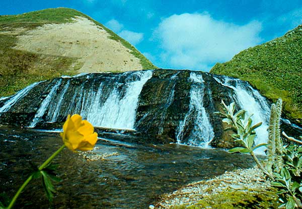 Долины рек и озер усыпаны лютиками, кляйтониями и ирисами. На склонах гор цветут рододендроны, купальницы и ветреницы.