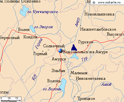 Из Комсомольска-на- Амуре добраться можно на метеоре, на автобусе.