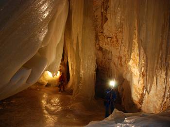 Их морфология определена трещиноватостью известняков. Полость построена относительно просто. Центральное место принадлежит гроту Алтай, который имеет генеральное субширотное простирание. Продольный профиль его имеет вид огромной ладьи с высокоприподнятым западным и восточным участками (17-25 м) и прогнувшейся серединой между ними до 10 м. Грот наполовину заполнен покровным льдом. Мощность льда 3-15 м. Масса ледника 7200 м3. Ледник питают воды зоны аэрации, которые при низкой температуре переходят в твердое состояние.