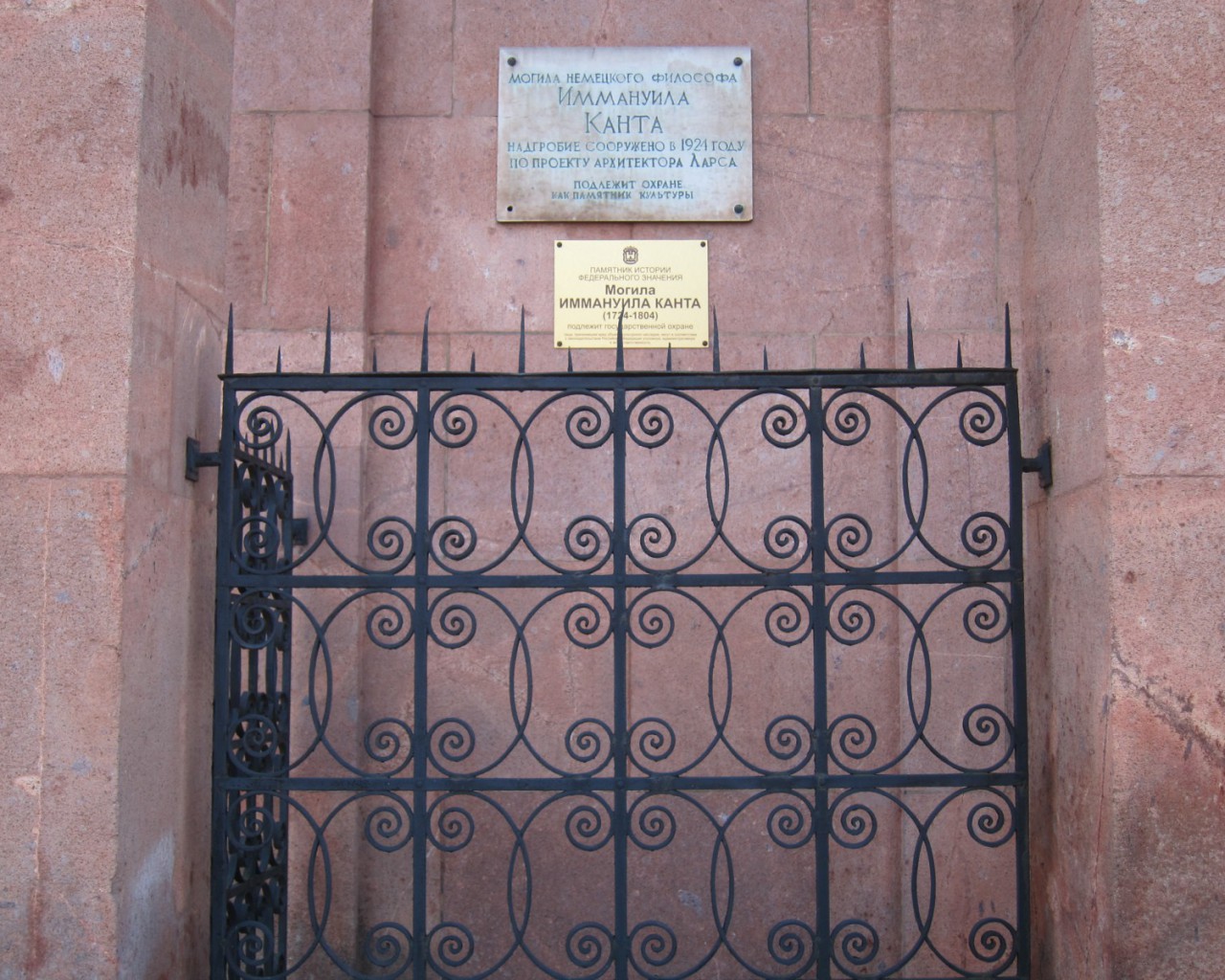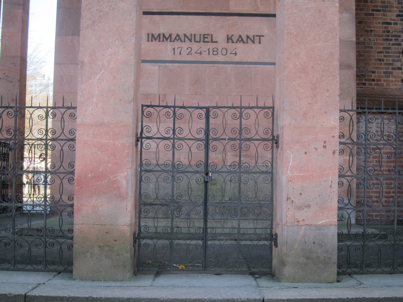 В 1804 году у стены Кафедрального собора в профессорском склепе был захоронен великий философ Иммануил Кант. В 1924 году здесь по проекту архитектура Ф. Ларса возведен портик с четырехгранными колоннами из розового порфира. Он сохранился и поныне, хотя вторая мировая война не пощадила древнего Кафедрального собора.