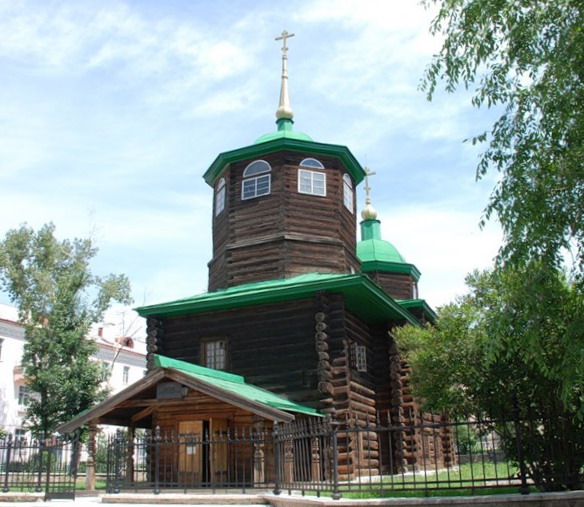 2. В самой старой части Читы находится Михайло-Архангельская церковь - уникальный памятник русского зодчества XVIII в. Это единственная сохранившаяся на территории Восточной Сибири двухпрестольная деревянная церковь, освещенная во имя св. Николая Чудотворца и Архангела Михаила. Архитектурный облик храма с незначительными изменениями сохранился до наших дней. Почерневшие от времени толстые бревенчатые стены церкви помнят многое. Жители Читы называют ее Церковью декабристов. Здесь искали духовного утешения и молились о своих близких декабристы, их жены. 4 апреля 1828 г. в Михайло-Архангельской церкви обвенчались декабрист И.А.Анненков и француженка Полина Гебль. В августе 1839 г. жители Читы стали свидетелями венчания в церкви декабриста Д.И.Завалишина и Аполлинарии Смоляниновой - дочери управителя Читинской волостью. У стен церкви похоронена жена Д.И.Завалишина и дочь С.Г. и М.Н.Волконских - Софья.
