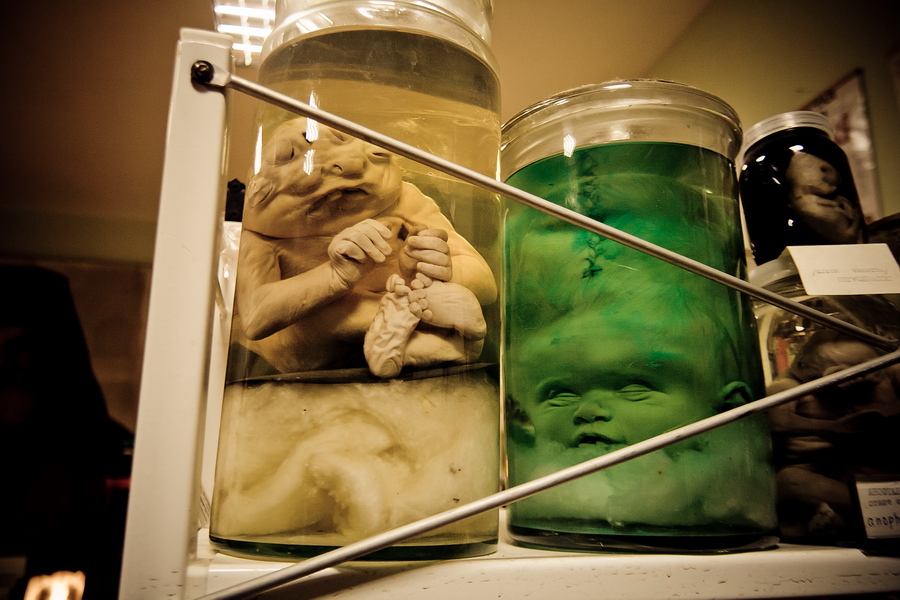Целый стеллаж экспонатов иллюстрирует пороки внутриутробного развития зародыша человека. Именно к этому стеллажу Щукин любит подводить молодых посетительниц, чтобы внушить им ответственность за своё предстоящее потомство.