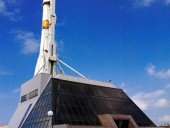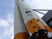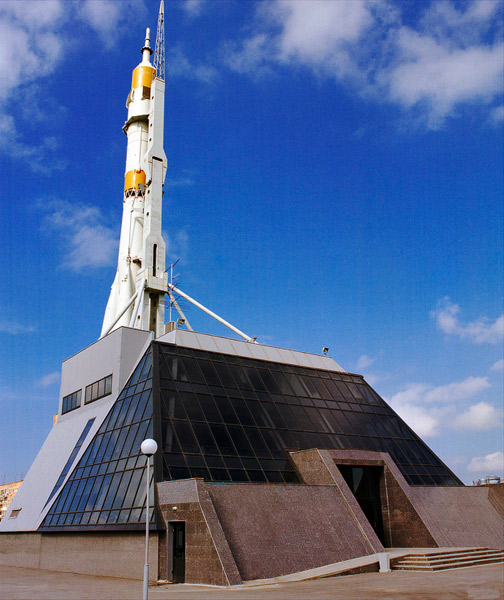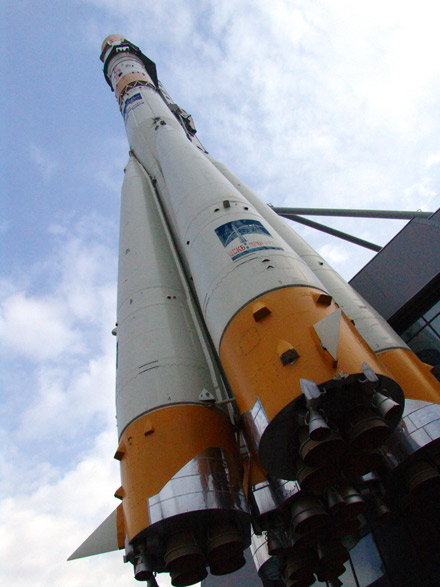 Фасад здания музея украшает подлинный «Союз» – это единственная в Европе вертикально-установленная ракета - носитель в собранном виде!