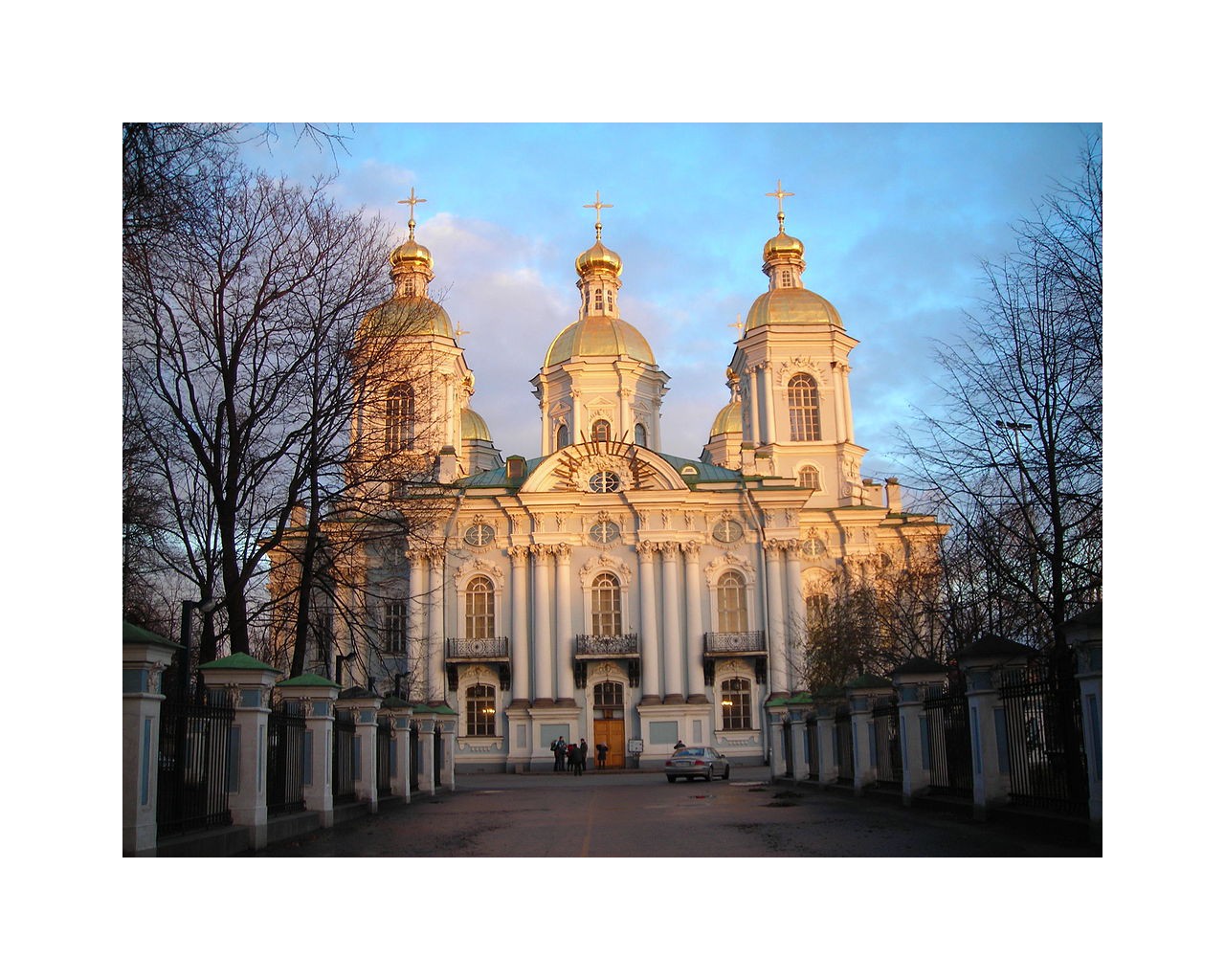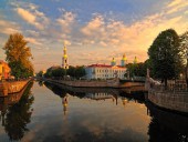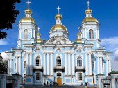 Никольский морской собор был построен в период с 1753 по 1762 год по проекту архитектора С.И. Чевакинского. Храм построен на морском полковом дворе, на месте деревянного храма, вмещает он около пяти тысяч человек одновременно. Отдельно стоящая четырёхярусная, завершенная высоким шпилем колокольня возведена в 1755 - 1758 годах. Двухэтажный собор представляет в плане равноконечный крест. Здание Никольского морского собора украшено коринфскими колоннами, собранными в пучки, лепными наличниками, широким антаблементом и увенчано золочёным пятиглавием. Необычный вид фасада создают неожиданные для православного храма украшения - балконы с узорными коваными решётками.