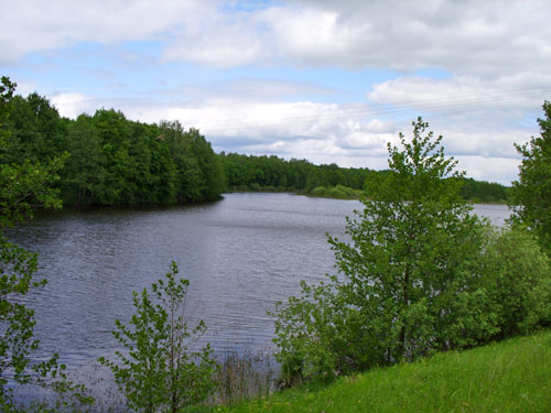 С северной и северо-западной сторон берега озера высокие, покрыты черноольшаником с участием дуба черешчатого (Quercus robur L.), липы сердцевидной (Tilia cordata Mill.), осины (Populus tremula L.). С юго-восточной стороны берега пологие, к ним примыкают пойменные луга, местами по берегам образуются заросли ивы пепельной (Salix cinerea L.). Из-за значительного уклона дна и глубины озеро слабо заросшее, отличается чистой, прозрачной водой. Площадь, занятая водными растениями, не более 20 % от общей площади водного зеркала; лишь в некоторых мелководных местах развивается прерывистое лентовидное сообщество телореза алоэвидного (Stratiotes aloides L.) и кубышки желтой (Nuphar lutea L.) шириной 2–3 м, на глубине до 1,5 м встречается рдест блестящий (Potamogeton lucens L.). Там, где берег высокий, у уреза воды образуется узкий пояс из осоки острой (Carex acuta L.).