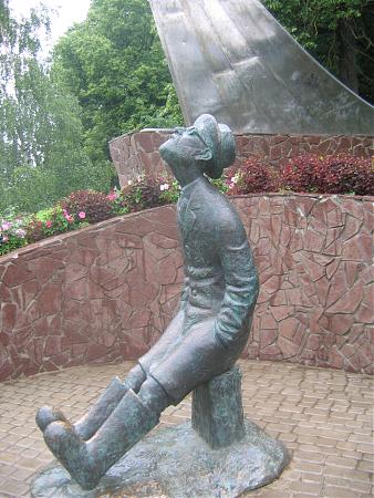 2. Краткая историческая справка: Фигура Циолковского с мечтательным взглядом, устремленным в небо, появилась в Боровске 17 сентября 2007 года. Открытие памятника было приурочено к 150-летию ученого. По замыслу автора - скульптора Сергея Бычкова - бронзовый ученый обязательно должен сидеть, на ногах его должны быть валенки, а взгляд устремлен в небо, а точнее, к «носу» ракеты, установленной возле памятника.