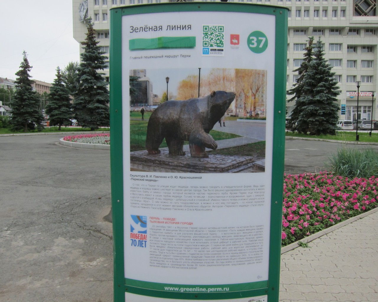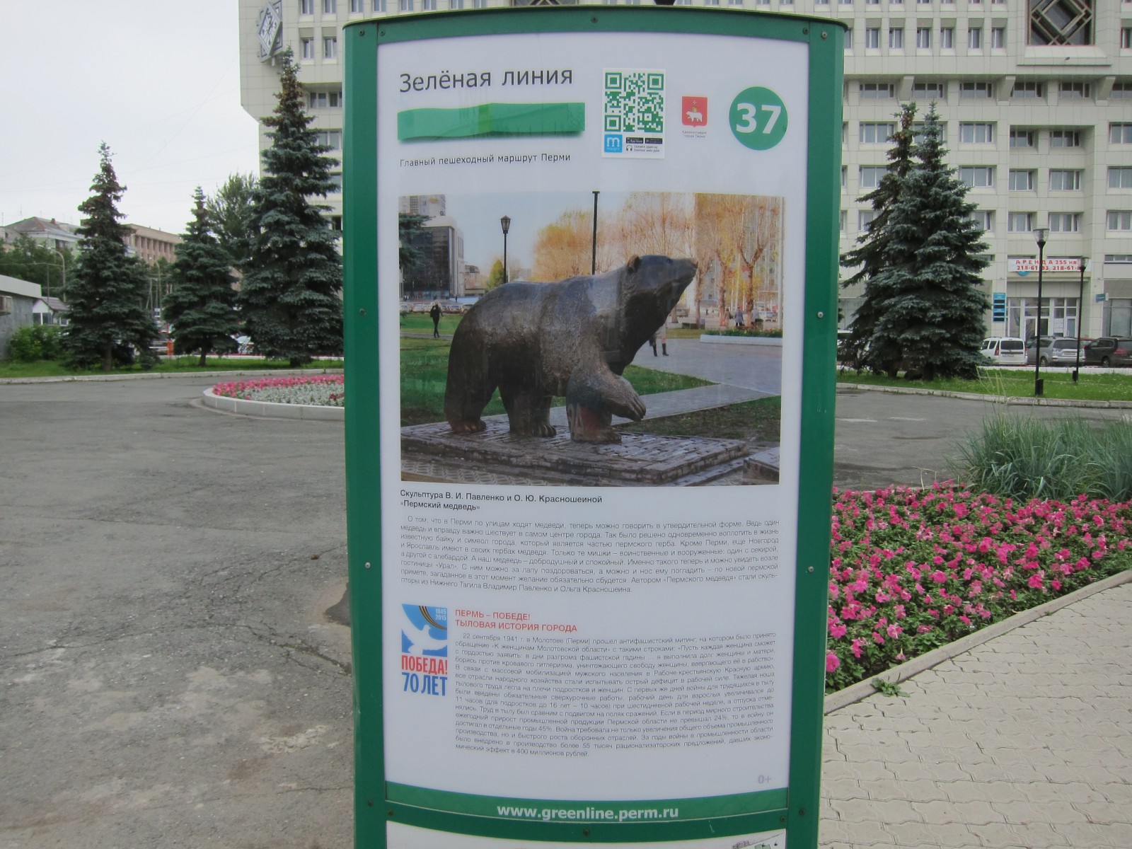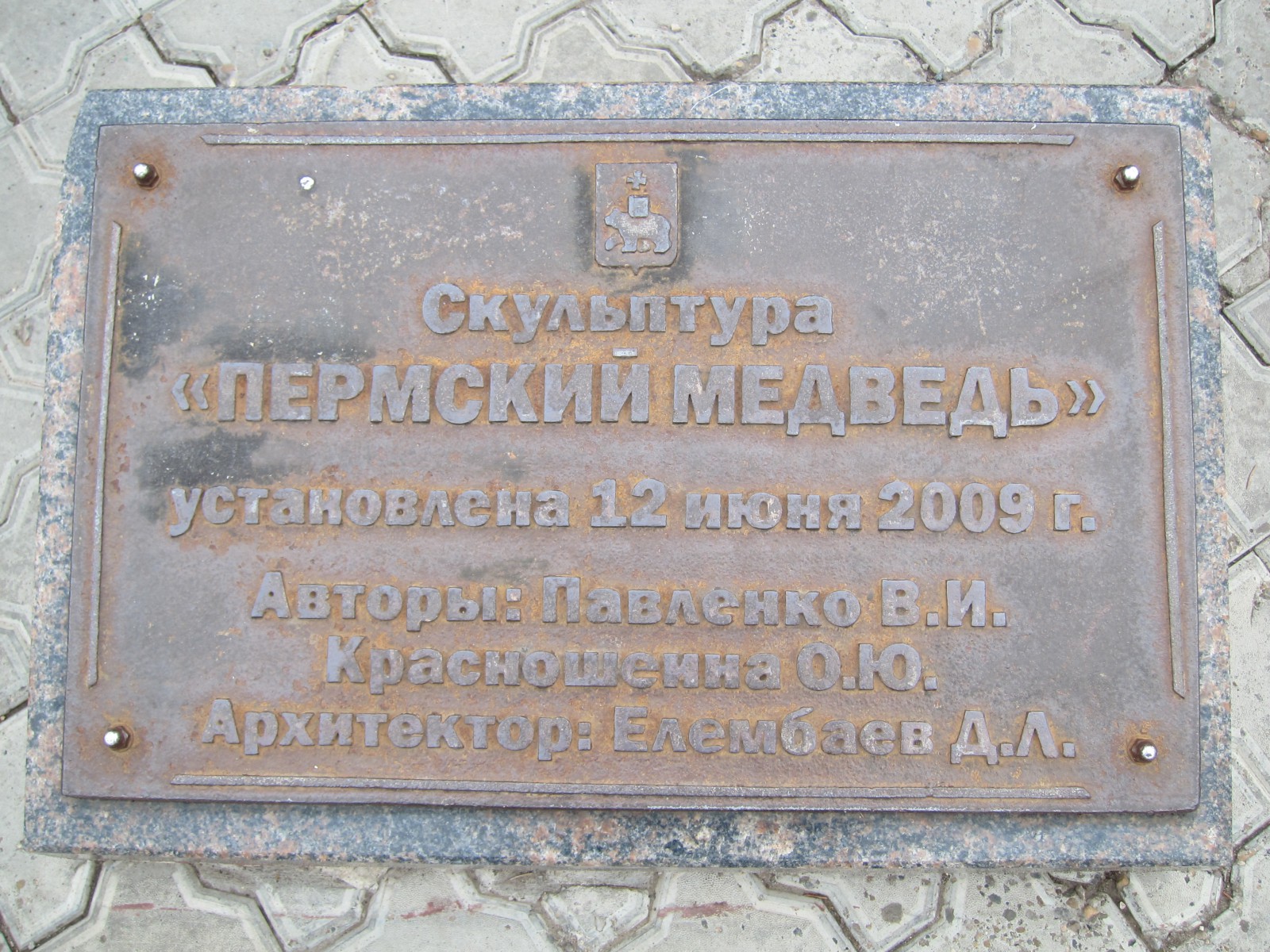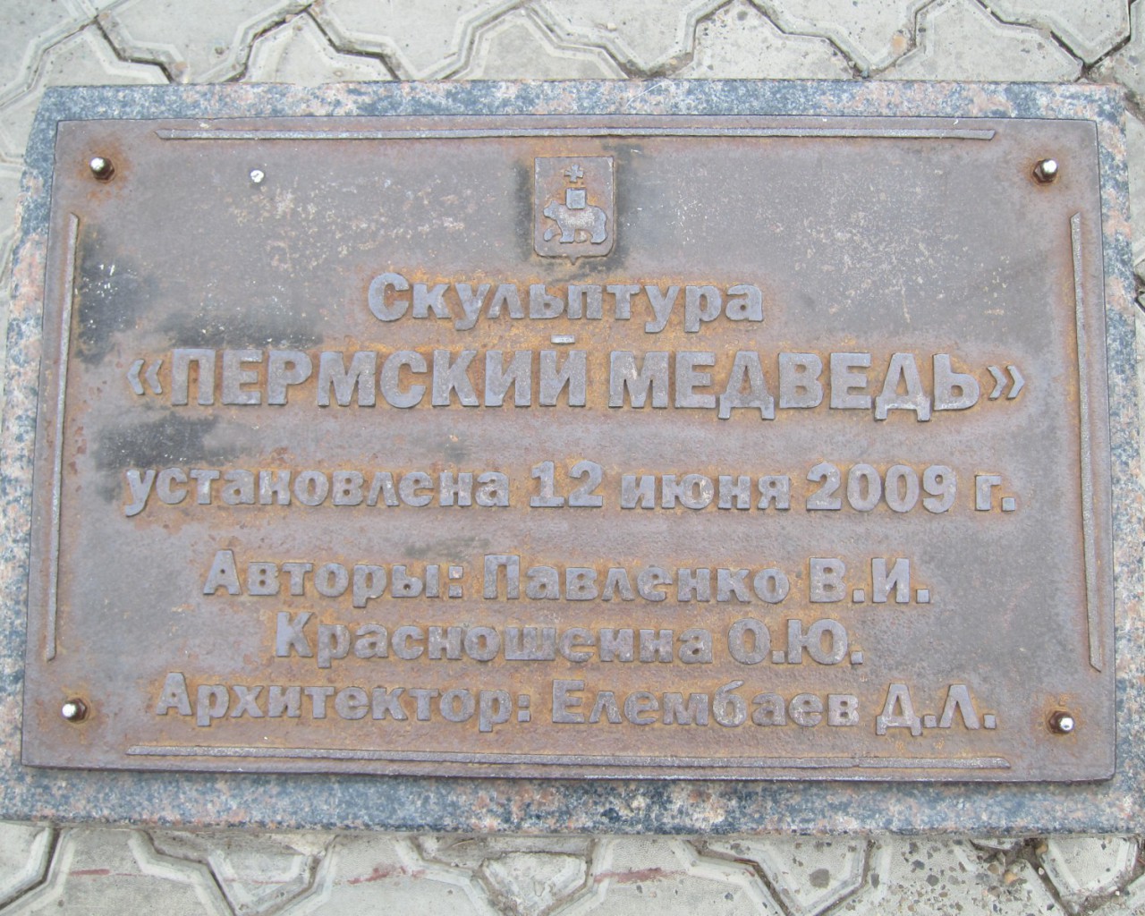 Скульптура была открыта 9 сентября 2006 года. В 2007 году в связи с ремонтом здания Законодательного собрания Пермского края скульптура была временно удалена, а 12 июня, после завершения благоустройства площадки, возвращена на прежнее место.29 октября 2008 года скульптура была убрана. 12 июня 2009 года поставили бронзовую статую, но уже в другом месте — около гостиницы «Урал», напротив ЦУМа.