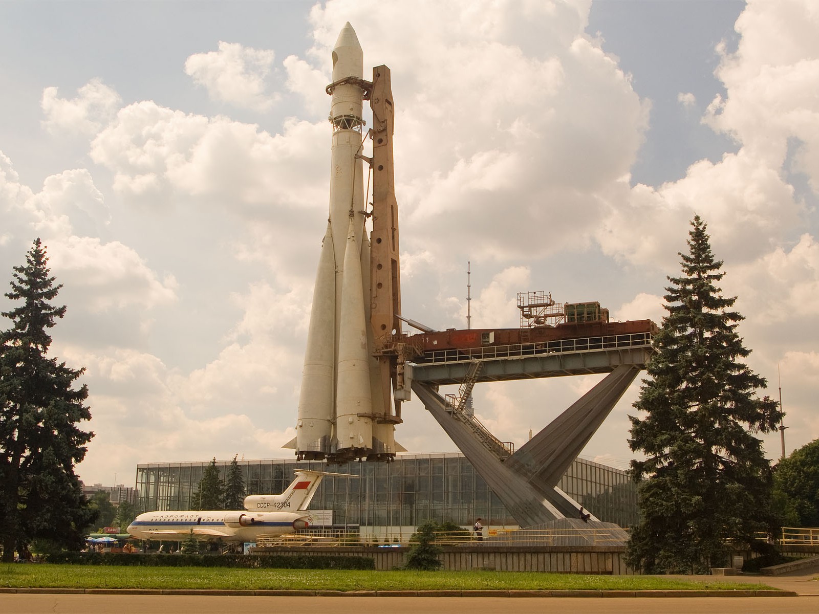 Ракета «Восток» была установлена на ВДНХ СССР в сентябре 1967 года в ознаменовании 50-летия Октября, и 20 сентября того же года состоялось её торжественное открытие. Ракету установили в центре большого круглого бассейна, где некогда, до 1952 года возвышался той же высоты монумент «Сталин» работы С. Д. Меркурова. В 2008-2010-е гг. ходили слухи и предложения, что макет ракеты необходимо демонтировать, но в октябре-декабре 2010 года памятник был отреставрирован и заблистал также, как и при открытии в 1960е.