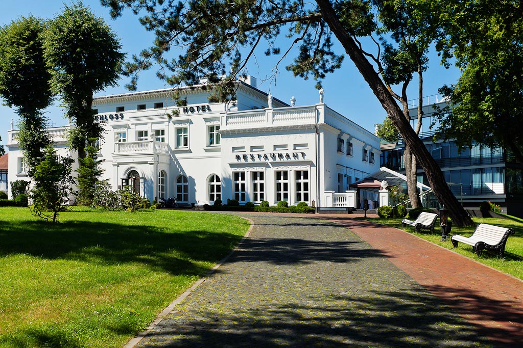 У отеля Schloss богатейшая история, в начале XVII века, когда эта земля принадлежала Восточной Пруссии, курфюрст Георг Вильгельм был очарован живописным городом Palmniken (ныне Янтарный), вокруг которого располагались богатые охотничьи угодья, и велел построить себе здесь охотничий замок.