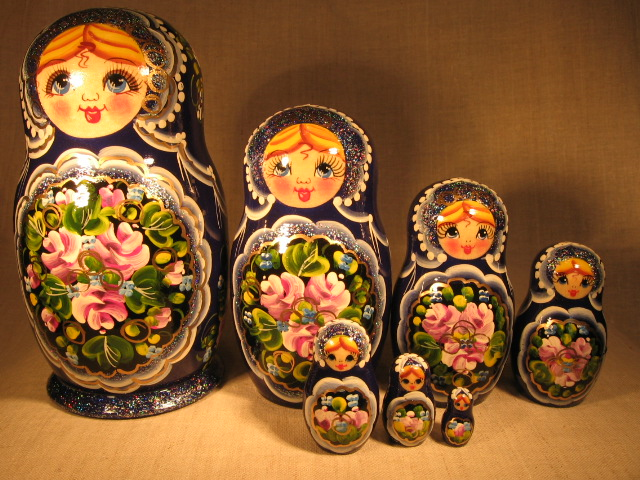 Матрешка – русская деревянная игрушка в виде расписной куклы, внутри которой находятся подобные ей куклы меньшего размера. Число вложенных кукол обычно от трех и более. Почти всегда они имеют овоидную («яйцеподобную») форму с плоским донцем и состоят из двух частей — верхней и нижней. По традиции рисуется женщина в красном сарафане и желтом платке.