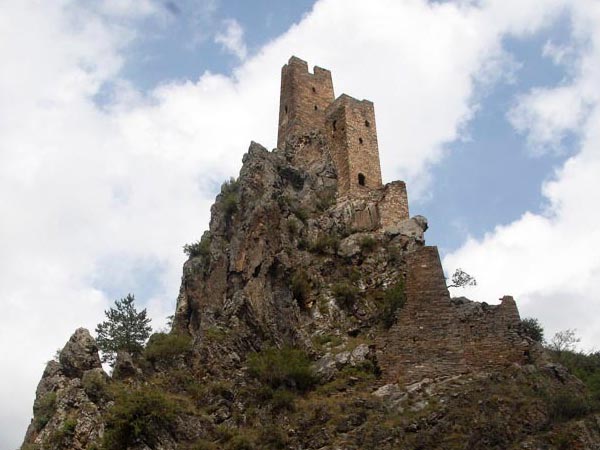 фундаментом замка стали гребни сланцевых скал теснины реки Гулай-хи. Крепость состоит из двух отдельно стоящих замков, когда-то соединённых подвесным мостиком. Башни сложены из камня и выглядят как естественное продолжение скал, на вершинах которых они построены. Они представляют собой четырёхэтажные строения усеченной пирамидальной формы с плоскими крышами и узкими окнами-бойницами. Заградительные стены, перекрывающие доступ к башням, органично вписаны в естественный рельеф неприступных скал.