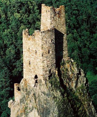 три основные башни, две из которых стоят на вершине одной скалы и одна на противоположной скале