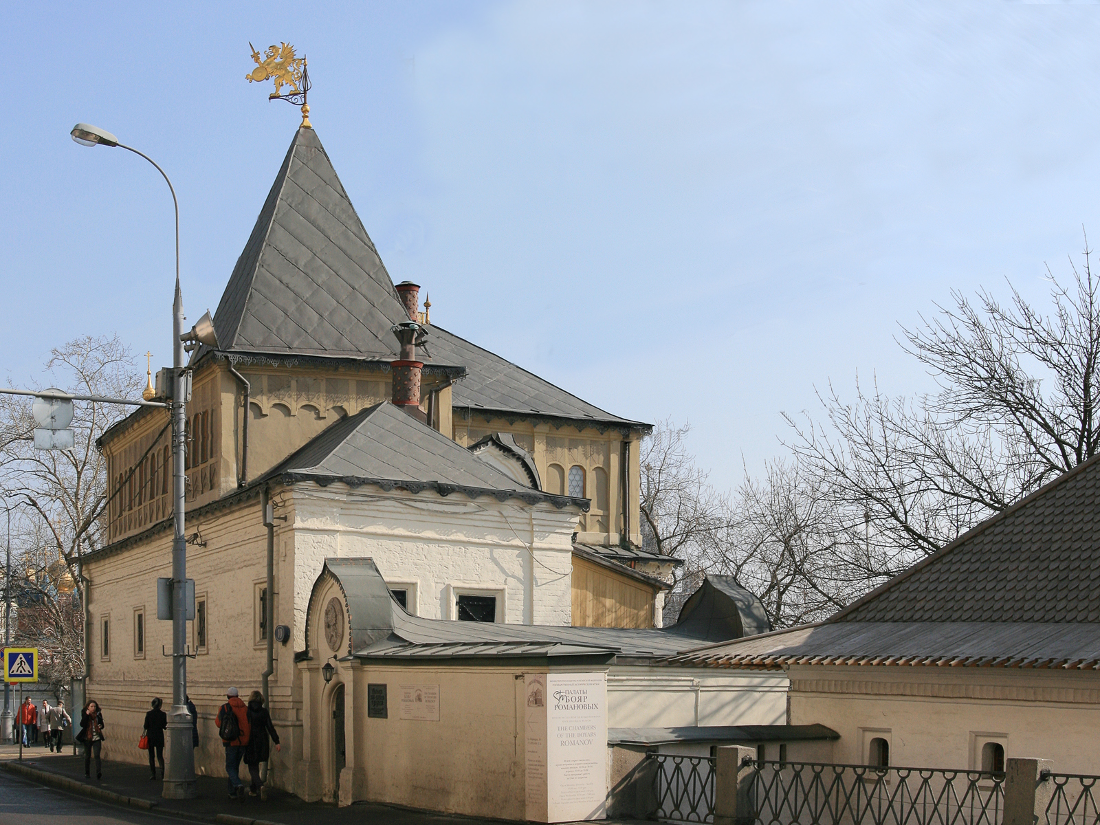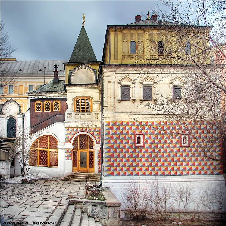 В соседствующем с Красной площадью районе, среди построек старой и новой Москвы, на улице Варварке, дом 10 расположено своеобразное по архитектуре, увенчанное высокой четырехскатной кровлей трехэтажное здание, каждый этаж которого по мере подъема в высоту уменьшается в размере. Это Палаты XVI—XVII вв., филиал Государственного Исторического музея, „Палаты в Зарядье".
