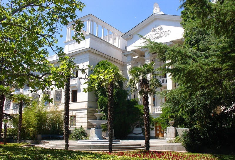 Дворцовые постройки санатория – три корпуса и коттедж – органично вписываются в горный ландшафт. Главный корпус выстроен в стиле имперского ампира: инкерманский камень прекрасно гармонирует с опалесцирующим мрамором, щедро использованным в отделке здания. Санаторный парк по разнообразию и красоте растительности уступает разве что своему прославленному соседу - Никитскому ботаническому саду. Здесь можно встретить представителей практически всей флоры субтропиков. Знаменитая коллекция южных роз санаторного парка радует отдыхающих почти круглый год.