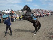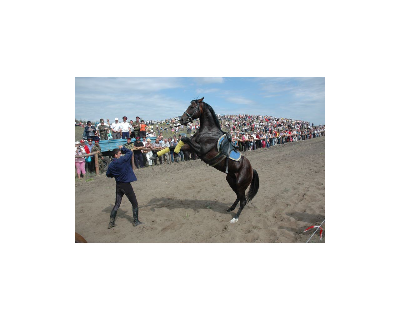 В воскресенье проходят большие скачки, в которых принимают участие спортсмены-конники России и ближнего зарубежья, казаки состязаются в джигитовке и рубке лозы.