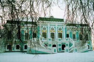 Основная дорога вела в усадьбу с юга, от Вязьмы. Она проходила между двумя одинаковыми хозяйственными постройками, симметрично оформлявшими въезд, и пересекала по одной из плотин речку Хмелитку, огибавшую усадьбу и превращенную здесь в четыре каскадных пруда, и, наконец, мимо церкви подходила к парадному двору. Во дворе дорога раздваивалась, огибала овальную клумбу перед главным домом и между северными флигелями выходила в поля, мимо плодового сада и пейзажной части парка. Еще одна дорога отходила от хозяйственного двора в юго-восточную часть усадьбы. Все дороги примерно на расстоянии пятисот метров были обсажены березками.