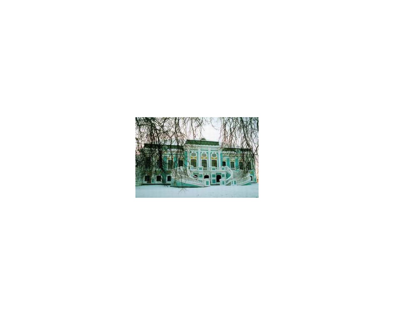 Главный дом. Его кирпичные стены первоначально были оштукатурены и окрашены в синий цвет, членения побелены.