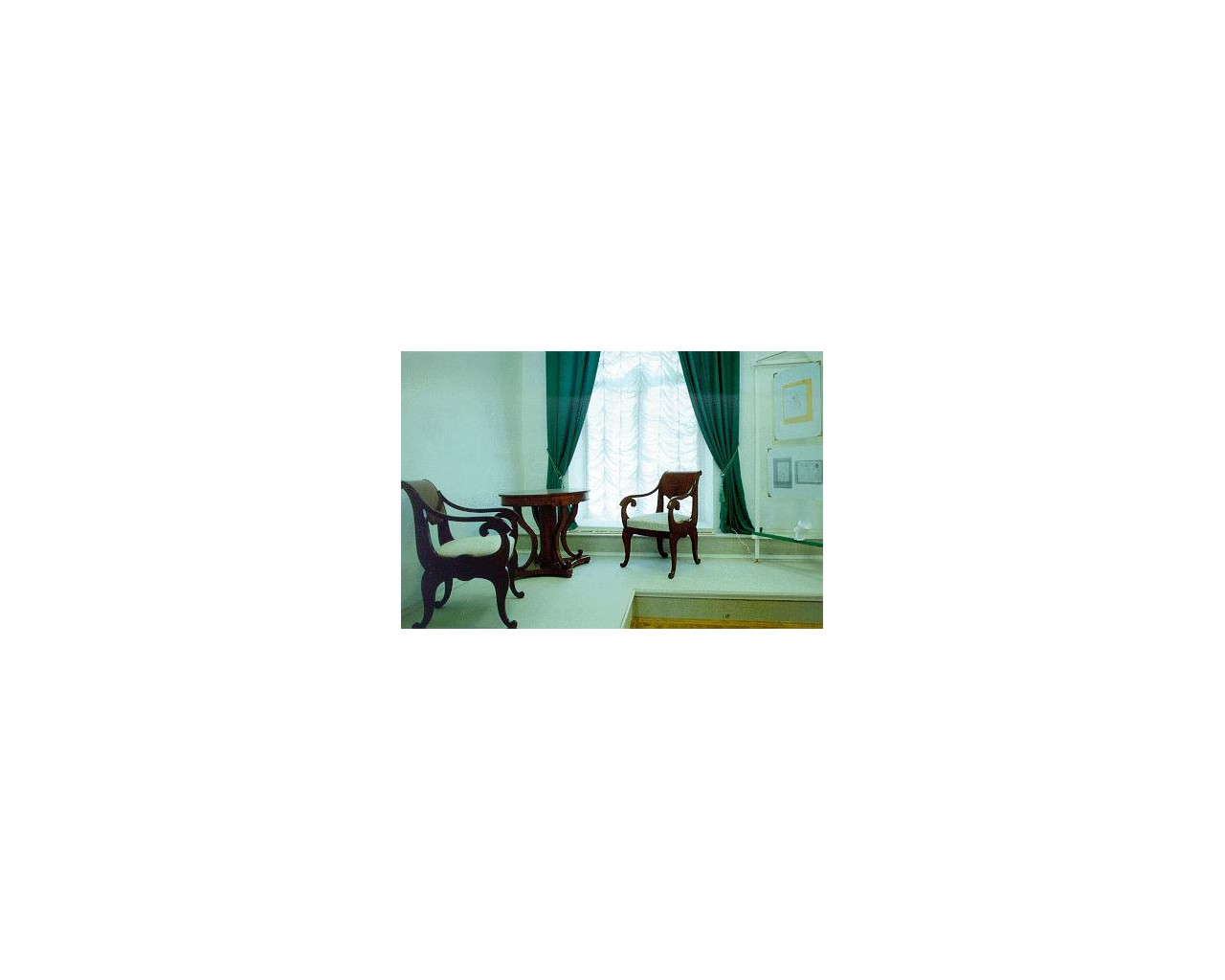 Во втором этаже комнаты вдоль основных фасадов размещены анфиладно. Главное помещение – большой зал в центре паркового фасада. Если в первом этаже была повсюду свода, то во втором свод был лишь в одном небольшом помещении без окон, примыкающем к одной из гостиных со стороны дворового фасада. Остальные перекрытия второго этажа плоские, лишь над залом – зеркальный свод.