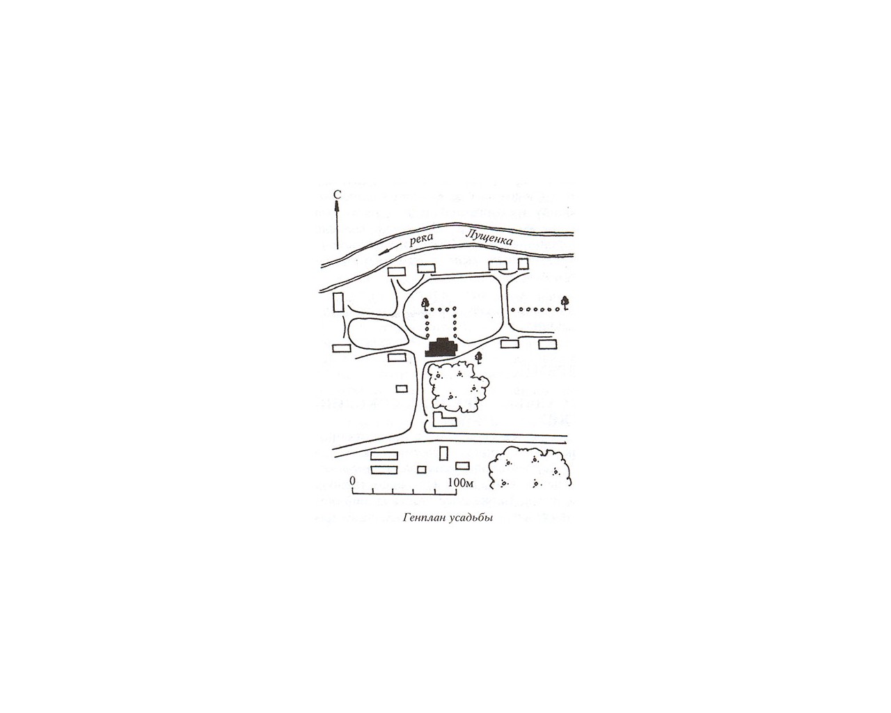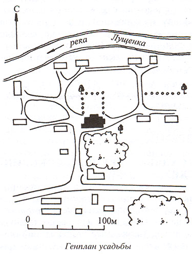 При Гернгроссах в имении было создано хорошо организованное хозяйство, работали винокуренный завод и две водяные мукомольные мельницы. Дом усадебный 2-я пол. 19 в. Главный северный фасад прямоугольного одноэтажного здания обращен к каре парадного двора, обсаженному деревьями; южный фасад выходит к хозяйственному двору усадьбы. Бревенчатые стены над кирпичным цоколем обшиты тесом и окрашены. Открытая терраса на восточном фасаде превращена в закрытое помещение, первоначальная планировка северной части дома изменена. Композиция здания и декор его фасадов -запоздалые реминисценции позднего классицизма. Центр северного фасада отмечен сильно вынесенным портиком с четырьмя квадратными столбами с филенчатыми панелями. Столбы несут дорический антаблемент над высоким фронтоном. Его тимпан украшен накладной резьбой прихотливого рисунка, напоминающего геральдический дворянский щит. Треугольные фронтоны над окнами опираются на резные кронштейны. Края фасадов и перерубы закрыты филенчатыми лопатками. Главный вход - через северный портик; боковой (выделенный небольшим фронтоном) - в правой части северного фасада. Здесь сохранились первоначальный навес с металлическими кронштейнами и резные двери с розетками в филенках и гирляндами между ними. По продольной оси дома проходит коридор. Вдоль южного фасада располагались подсобные помещения, северную часть дома занимали жилые и парадные комнаты. В помещениях - подшивные потолки.