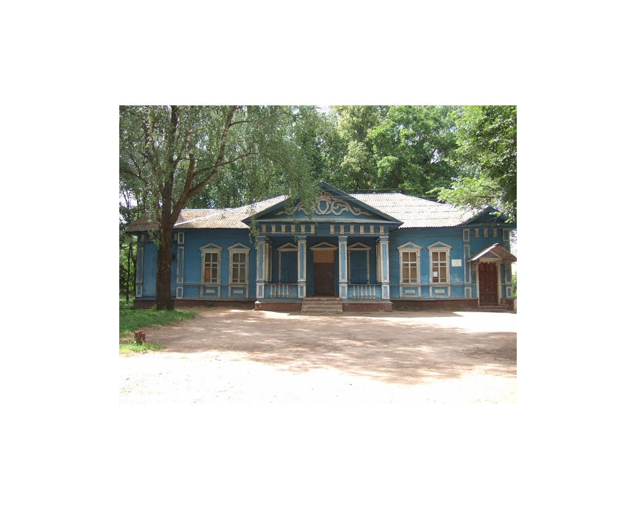 Сохранились деревянный одноэтажный главный дом второй половины XIX в. в стиле классицизм и обсаженное старыми деревьями каре парадного двора.