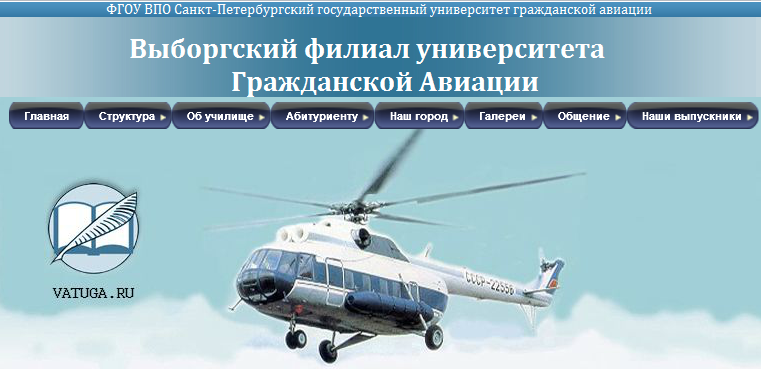 до 26.06.2007 - Выборгское авиационное техническое училище гражданской авиации. История училища берет начало в августе 1949 года, когда приказом главкома авиации Военно-Морского Флота в г. Пионерске Калининградской области была создана 56 школа авиамехаников.В 1952 году на базе школы образовано 66-е Военно-морское авиационное техническое училище, призванное готовить техников-офицеров для морской авиации.