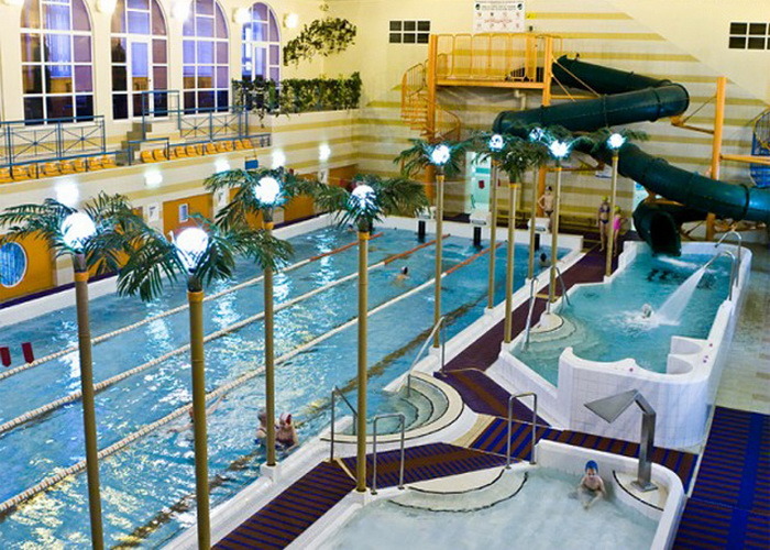 Бассейн: ежедневно с 8:00 до 22:30 (с 14:00 до 18:30 бассейн работает для проведения занятий с детьми, другие посетители не обслуживаются)