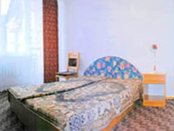 В номерах французская кровать, мягкая часть, шкаф, стол, телевизор, холодильник, душ, туалет.