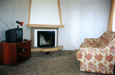 Однокомнатные двухместные: спальня - 2 односпальные кровати, тумбочки, телевизор, зеркало, стулья, камин; холл-прихожая - посудный шкаф, мойка, холодильник, стол, стулья; санузел - умывальник, унитаз, душ.