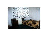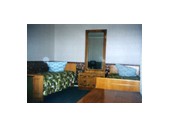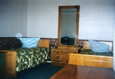 Однокомнатный двухместный: спальня - 1,5-спальная кровать, 2 тумбочки, телевизор, трюмо, пуф; холл-прихожая - посудный шкаф, холодильник, стол, 2 стула, вешалка; санузел - умывальник, унитаз, душ.