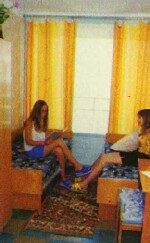 Проживание в целом не плохо не считая решоток на балконе, и то что моя кровать была изресована надписями типо:" здесь спал Вася!!" " люблю кристалл" и т.п... а ещё у нас раковина засаривалась постоянно. Утром встаю,а раковина почти до краёв наполнена грязной,мутной, пенной водой!!! Кстати,о воде... в душ пролесть это вообще проблема , надо заваливаться в душевые кабинки чуть ли не целым отрядом,чтобы через 5 минут вам не начали стучать и орать:"выходите,сколько можно мыться??" Питание,как во всех лагерях,-без коментариев .... Но главное вожатые! Конечно я понимаю если человек провенился его надо наказать, но не застовлять убирать территорию за корпусом или застовлять мыть полы в корпусе. А под конец смены подарок-клеить обои в своей комнате... Вообщем отдахнуть не успели ,единственное спасение-море. но на 4 кв. м не очень разгуляешься, в воду по свистку ,нырять нельзя......