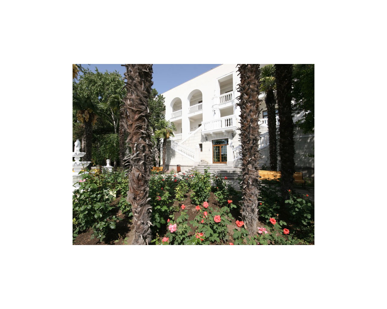 4 этажа, 39 номеров, уединенно расположен в глубине парка Чаир. Во внутреннем Юсуповском дворике корпуса приятно отдохнуть и поразмышлять в тишине. В позапрошлом веке здесь, в старинном парке Чаир, воспетом в известном романсе, находился охотничий домик князя Юсупова. Некоторые номера украшают античные колонны, вазы, а также декоративные элементы, когда-то украшавшие дом князя. Удаленность от пляжа — 100 метров, спуск к пляжу лифтом, который находится в корпусе № 2 или по аллеям парка.
