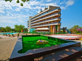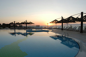- пляжный комплекс (галечный пляж) с широким спектром водных аттракционов,