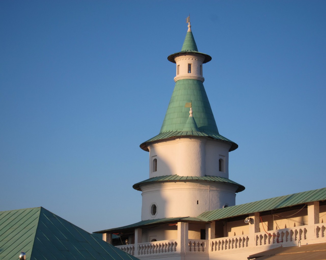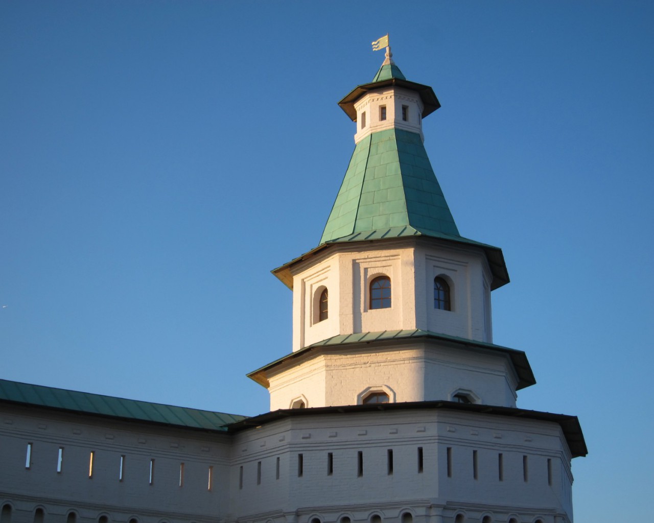 Воскресенский Новоиерусалимский монастырь. В 1656 году ставший за шесть лет до этого патриархом и только что начавший церковную реформу Никон распорядился о строительстве нового монастыря. Вполне в духе господствовавшей идеологии "Москва — Третий Рим", монастырь должен был стать религиозным центром всего православного мира. По замыслу, он должен был копировать сооружения Святой Земли (и называться Новый Иерусалим), а главный собор — храм Гроба Господня в Иерусалиме.