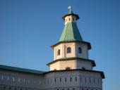 За Елизаветинскими воротами монастыря находится Гефсиманский сад. Собственно, сада там давно нет, сейчас это просто парк в излучине реки Истры.
