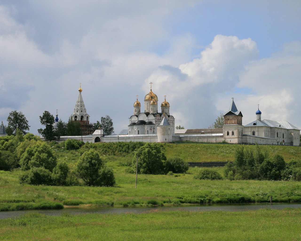 Основание обители совершилось в 1408 г., а в 1420 г. в монастыре имелся каменный собор во имя Рождества Пресвятой Богородицы. Заказчик собора -Макарий, новгородский архиепископ (денежный вклад 1526-1542) собор сделан из кирпич. Собор Рождества Богородицы являлся монастырем. Тип храма- крестово-купольный четырехстолпный трехапсидный храм на подклете, увенчанный световым пятиглавием; западные столбы - круглые, восточные - квадратные в сечении .Композиция- осевая симметрия.