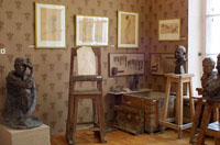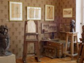 Экспозиция музея размещена в нескольких залах. В них представлены произведения разных лет, выполненные в различных материалах: гипс, бронза, мрамор, дерево. Особый интерес представляет расположенная на втором этаже мастерская, дающая представление о титаническом труде скульптора. В ней представлены инструменты, которыми работал мастер и заготовки для скульптуры. В мемориальной части музея представлены немногие сохранившиеся предметы обихода, фотографии родных.