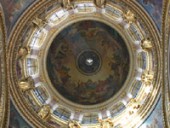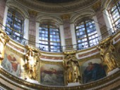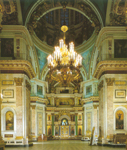 В оформлении интерьера многочисленные произведения живописи, мозаики, скульптуры, эффектное сочетание цветного камня и позолоты создают богатейшую цветовую гамму.